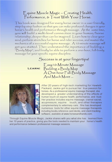 This book was designed for every horse owner in a user friendly, step-by-step fashion so that you can make profound changes in your horse’s health and performance through massage. At the same time, you will build a multi-level connection in your human/horse relationship, deeper than can be imagined. Learn how to clear your mind, perform stretches for horse and rider success, and master the mechanics of a successful equine massage.